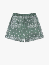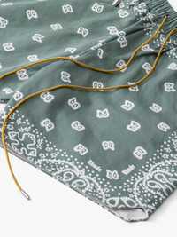 Premium bandana shorts f eaturing an elasticated waistband for a comfortable fit. Features twin front zip pockets adorned with Rhude custom hardware and twin back patch pockets for added functionality. Exaggerated front drawstrings in our signature Mustard tone. SIZING Standard fit. We recommend taking your standard size.