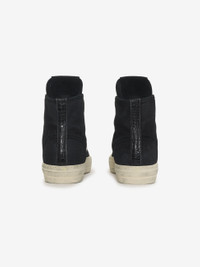 High top blend of canvas, suede, and rubber that constructs the upper, supported by a sturdy manmade sole. Crafted with precision in Italy, these shoes boast a lace-up front, allowing for a customizable fit that suits your comfort. Along the sides, a faux snake print embellishment introduces an intriguing element to the design. RUBBER SOLE, 85% UPPER CALF LEATHER 15% UPPER POLYETHERANE 100% LINING PIG LEATHER
