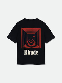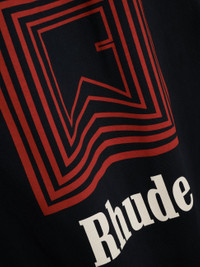 Custom-fit vintage wash cotton short sleeve tee-shirt with Rhude Chevron Box logo graphics graphics printed at front and back. 100% COTTON
