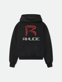 Long sleeve French Terry hoodie with Rhude circuit graphics printed on the front, with a clean back. Featuring a kangaroo front pocket and dropped shoulders. Each piece is unique and print distressing my vary per style. 100% COTTON