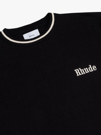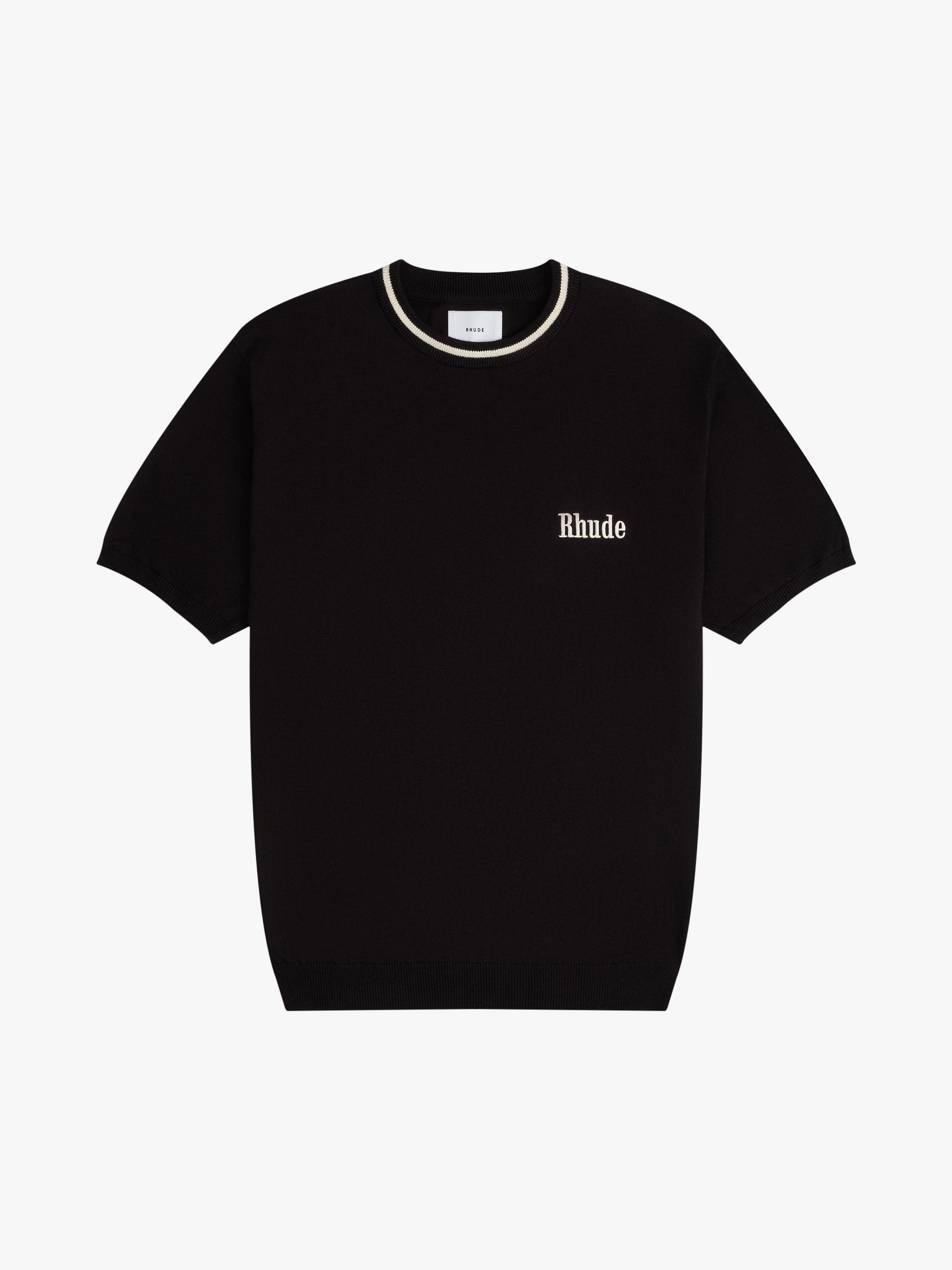 Custom-fit cashmere short sleeve tee-shirt with Rhude Logo embroidered on the front, and a ribbed knit collar.