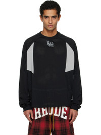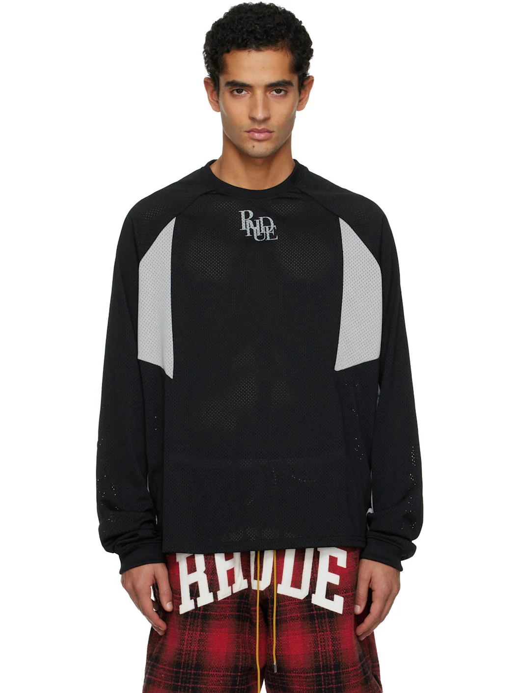 Mesh T-shirt. · Paneled construction · Rib-knit crewneck and cuffs · Logo printed at chest · Raglan sleeves · Logo applique at back Supplier color: Black/Grey 100% polyester. Made in United States 252923M213005