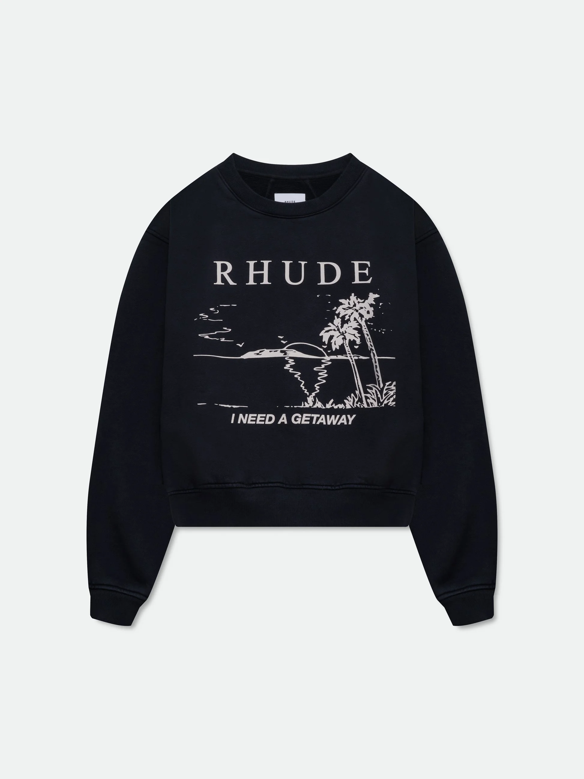 This long-sleeve cotton crewneck showcases Rhude "I Need A Getaway" designs on front, with a clean back. It features a comfortable pull over styling, and dropped shoulders for a relaxed, effortless fit. 100% COTTON