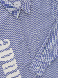 Premium long sleeve woven shirt crafted from mid-weight cotton. Features side panel logo, a camp collar, dual front chest pockets, button down styling, and flat hem. 100% COTTON