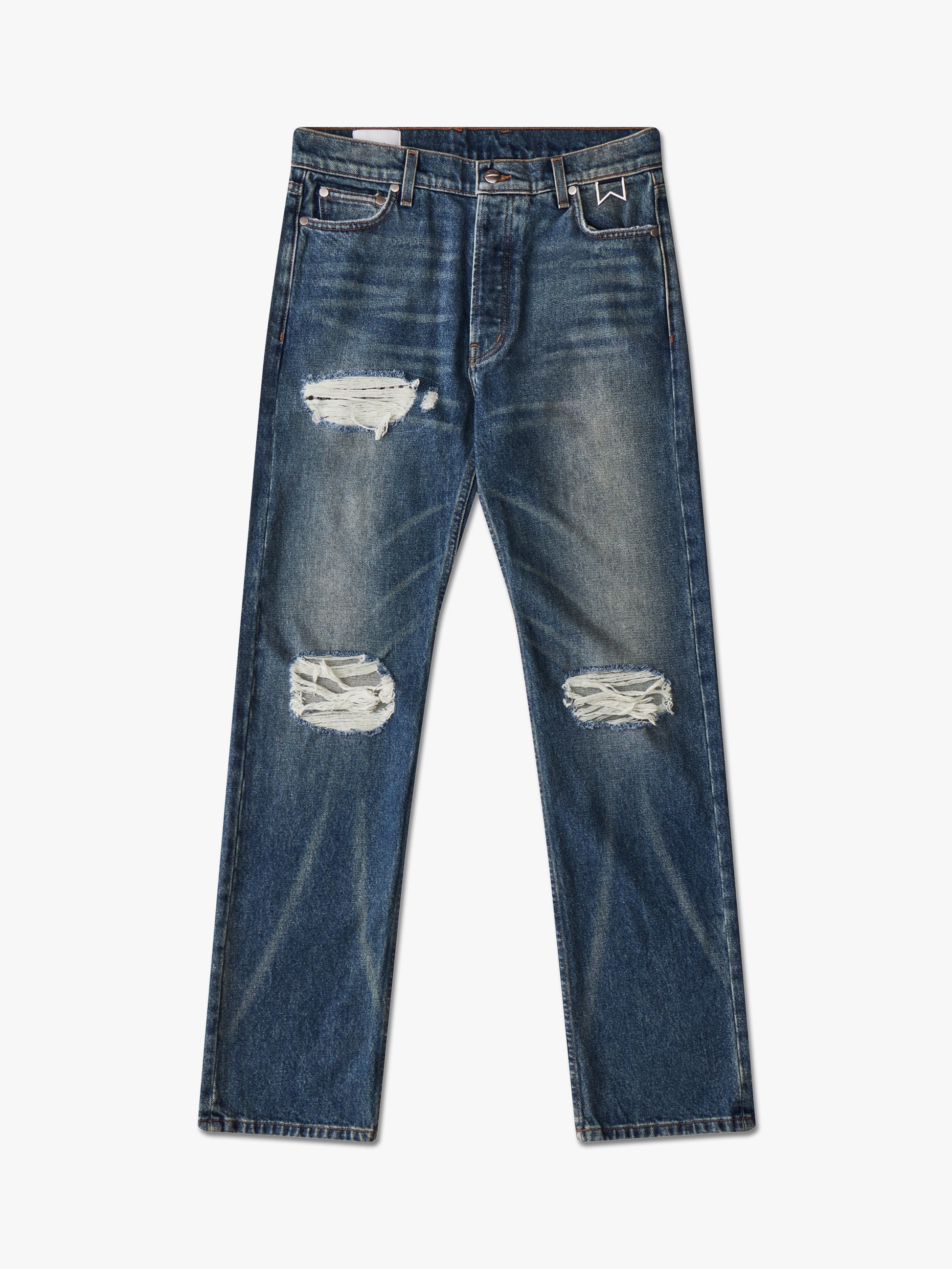 The Classic Fit Stretch Cotton Denim Jeans showcase a mid-rise design with distinctive seamlines, an integrated boxer brief, and exclusive Rhude Closure button & hardware for a personalized touch. CARE INSTRUCTIONS 98% COTTON, 2% ELASTANE DRY CLEAN ONLY WE RECOMMEND TAKING YOUR STANDARD SIZE