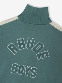 RIBBED TRACK JACKET WITH A STAND COLLAR, FEATURING "RHUDE BOYS" EMBROIDERED ON BACK. TWIN PATCH POCKETS AT FRONT. CUSTOM RHUDE ZIPPER AT FRONT CLOSURE. CARE DOUBLE KNIT/2X1 RIBBING WE RECOMMEND TAKING YOUR STANDARD SIZE DRY CLEAN ONLY