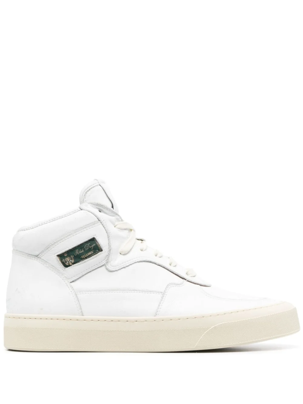 Cabriolets hi-top sneakers white calf leather panelled design faded effect logo patch to the side logo patch at the tongue round toe front lace-up fastening flat rubber sole Made in Italy Composition Outer: Calf Leather 100% Sole: Rubber 100% Lining: Calf Leather 100% SIZE & FIT Measurement HEIGHT 3.34 in(8.5 cm) Sole height 1.37 in(3.5 cm)