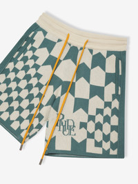 PREMIUM CASHMERE-COTTON BLEND SHORT WITH RHUDE SCRAMBLE LOGO PLACED ON FRONT & BACK FEATURES A MONOGRAM ALL OVER DESIGN. FEATURING TWIN SIDE POCKETS, SINGLE BACK POCKET, AND EXTENDED DRAWSTRINGS IN OUR SIGNATURE MUSTARD TONE. CARE 85% SUPIMA COTTON 15% CASHMERE DRY CLEAN ONLY SIZING STANDARD FIT WE RECOMMEND TAKING YOUR STANDARD SIZE