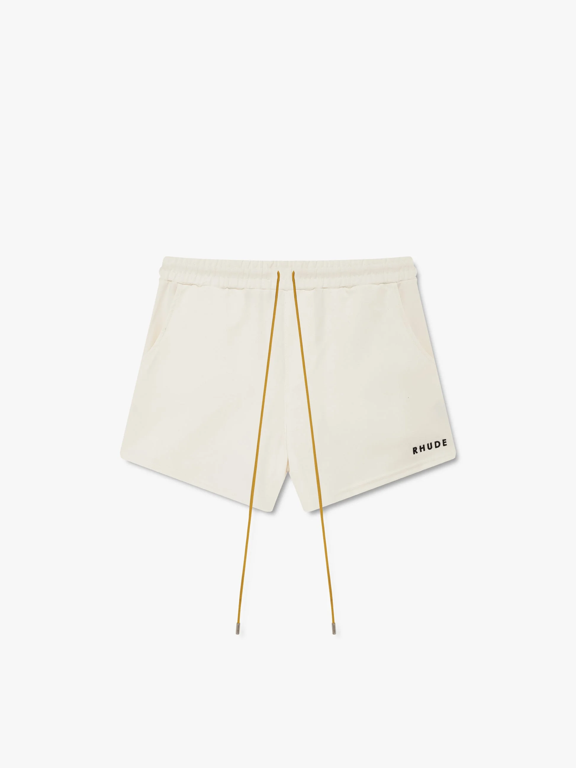 Premium PJ short with Rhude logo placed on the front. Features an elastic waistband with exaggerated drawstrings in our signature Mustard tone to ensure a secure and adjustable fit. Polyester 78% / Viscose Rayon 17% / Spandex 5%
