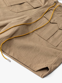 Premium poly/viscose blend short features fronttwin pockets, elasticated wasitband, and extended drawstrings in our signature mustard tone. CARE INSTRUCTIONS Polyester(63%), Viscose Rayon(34%), PU (Polyurethane)(3%)/100% LYOCELL Dry clean only. Standard fit. SIZING We recommend taking your standard size.