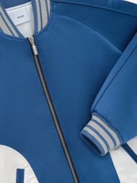Chamonix Ski Souvenir bomber jacket with RHUDE CHAMONIX SKI embroidered designs on the back. Includes a custom Rhude two-way zipper closure, stand collar, and ribbed waist and cuffs. SHELL: 100% POLYESTER RIB: 95% POLYESTER 5% SPANDEX LINING: 100% LYOCELL Standard fit. We recommend taking your standard size.