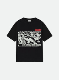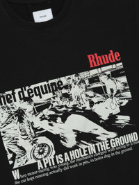 Custom-fit vintage wash cotton short sleeve tee-shirt features a ribbed neckline, with Rhude graphics printed at front and back. 100% COTTON
