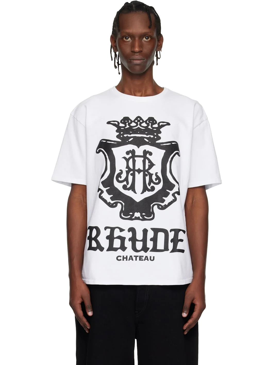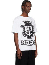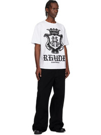Cotton jersey T-shirt. · Rib-knit crewneck · Logo graphic and text printed at front · Dropped shoulders Supplier color: White/Black 100% cotton. Made in United States 261923M213012