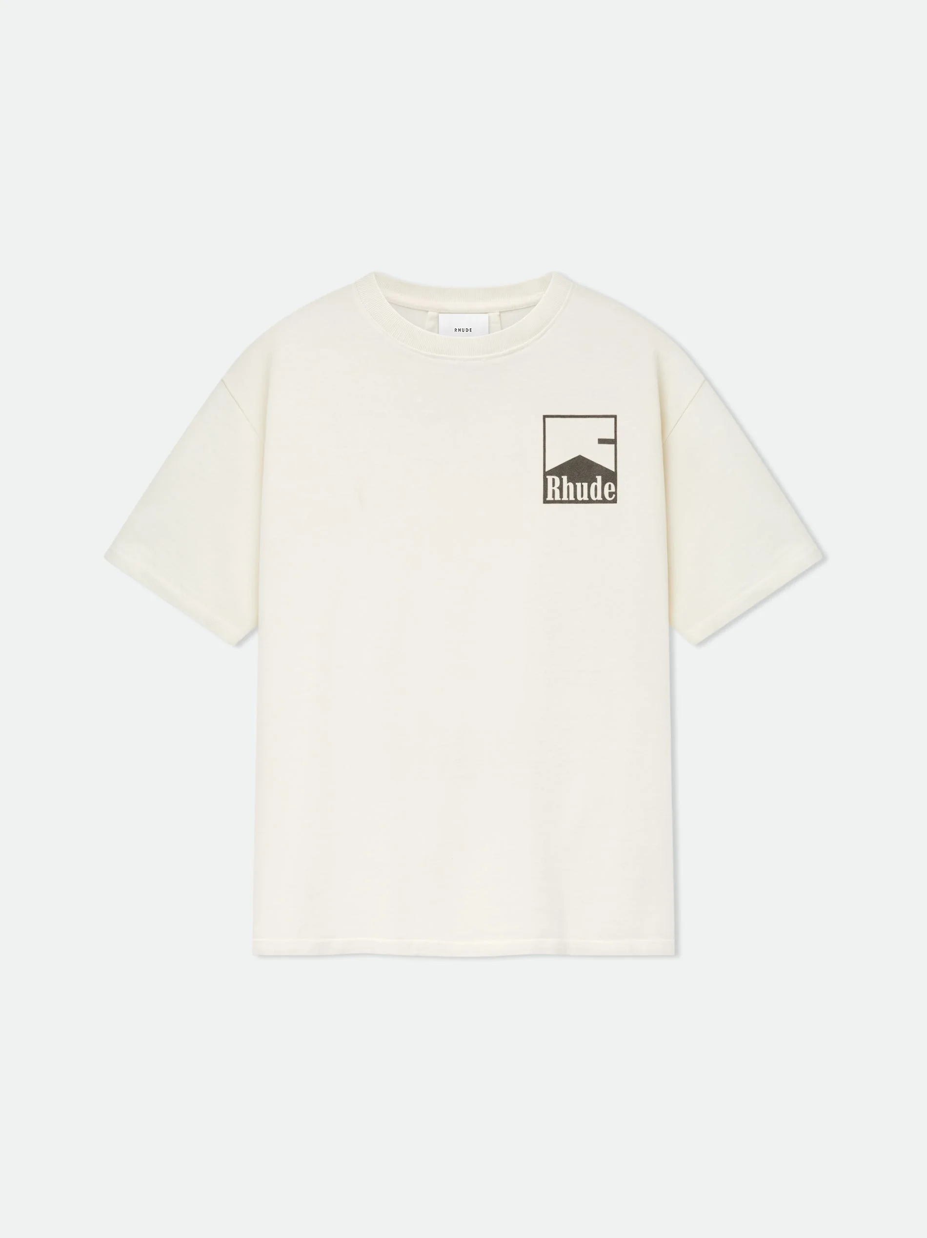 Custom-fit vintage wash cotton short sleeve tee-shirt with Rhude Chevron graphics printed at front chest, and back. 100% COTTON
