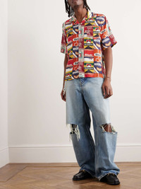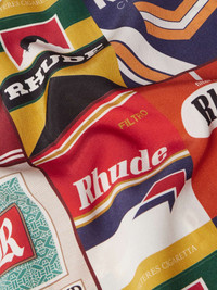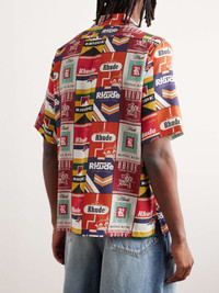 Rhude's influences range from '90s streetwear to classic American iconography and this shirt references both. It's cut for a relaxed fit from silk-twill and printed with vintage-style cigarette packs stamped with the brand's logo. Size & Fit - Model wears a size larger to achieve a looser fit - Lightweight, non-stretchy fabric - Model is shown wearing a L - Model measures: chest 38"/ 96cm, height 6'0"/ 183cm Details & Care - Multicoloured silk-twill - Button fastening - 100% silk - Dry clean - Mother-of-pearl: Indonesia