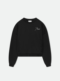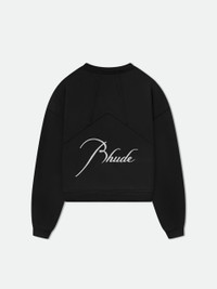 Long sleeve French Terry Crewneck with Rhude signature script logo embroidered on the front and back. Featuring a kangaroo front pocket and dropped shoulders. 100% COTTON