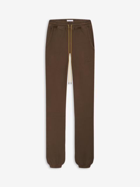 HEAVYWEIGHT SWEATPANT WITH SIGNATURE RHUDE SCRIPT ON THE FRONT IN TONAL BROWN, FEATURING OUR SIGNATURE MUSTARD DRAWSTRINGS. CARE 100% FRENCH TERRY DRY CLEAN ONLY. STANDARD FIT. SIZING WE RECOMMEND TAKING YOUR STANDARD SIZE.