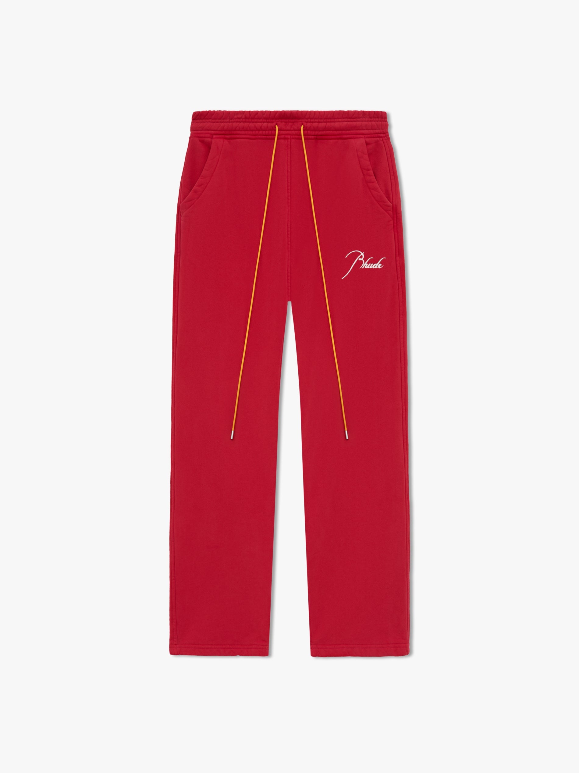 Heavyweight cotton sweatpant with signature Rhude script logo on the front featuring our exaggerated drawstrings in mustard tone. 100% COTTON DRY CLEAN ONLY STANDARD FIT WE RECOMMEND TAKING YOUR STANDARD SIZE