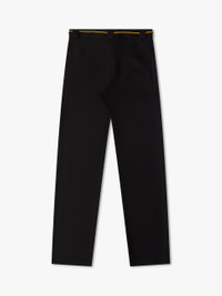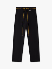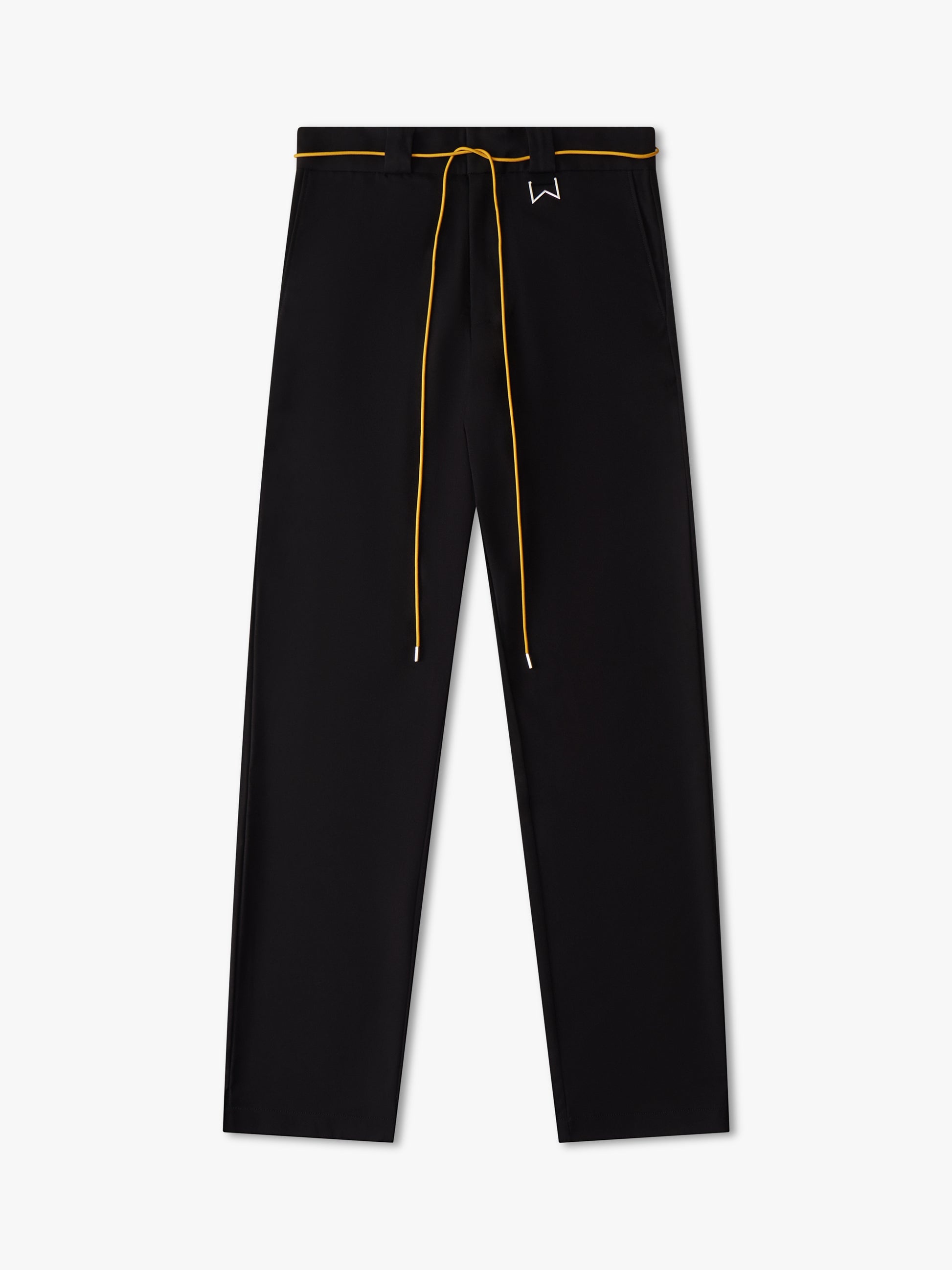Classic trouser pant crafted from a high-quality breathable poly/viscose blend, features a straight leg, and tailored waistband with extended mustard drawstrings, and a functioning chevron D-ring. CARE INSTRUCTIONS Polyester(63%), Viscose Rayon(34%), PU (Polyurethane)(3%)/100% LYOCELL Dry clean only. SIZING Standard fit - We recommend taking your standard size.