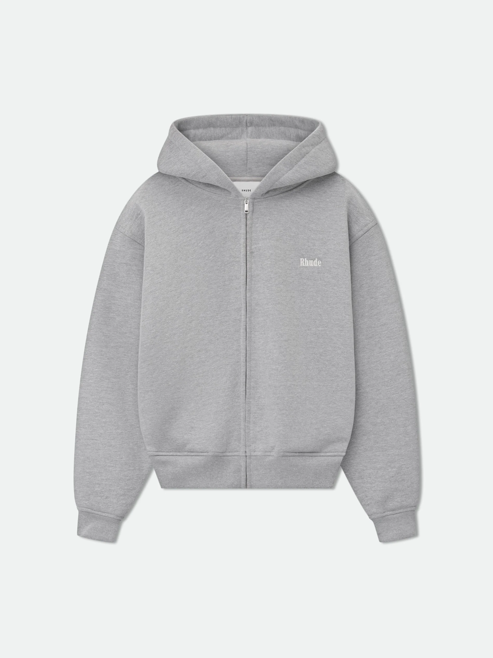 Heavyweight full-zip hoodie with Rhude classique logo embroidered on the front, with a cleam back. Zipper closure with custom Rhude hardware. 100% COTTON
