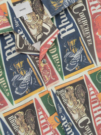 Crafted from premium cotton, this piece features Rhude all over design, inspired by our unique take on collegiate flags. Includes custom Rhude snap closures and a distinctive flat hem for a refined finish. 100% COTTON WE RECOMMEND TAKING YOUR STANDARD SIZE.