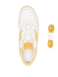 colour-block low-top sneakers white/mustard yellow leather colour-block panelled design logo print to the rear front lace-up fastening round toe flat rubber sole Made in Italy Composition Lining: Leather 100% Outer: Leather 100% Sole: Rubber 100% SIZE & FIT Measurement HEEL 1.18 in(3 cm) Sole height 0.59 in(1.5 cm)