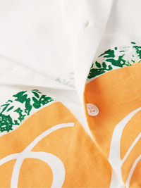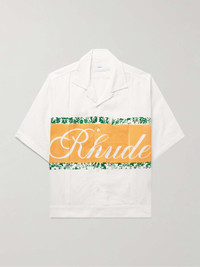 Rhude's camp-collar shirt is printed with green leaves and a bright-yellow stripe that nods to founder Rhuigi Villaseñor's Filipino roots. It's cut from breathable linen and detailed with front pleats and a partially elasticated waistband. Size & Fit - Model wears a size larger to achieve a looser fit - Lightweight, non-stretchy fabric - Model is shown wearing a M - Model measures: chest 36"/ 92cm, height 6'1"/ 185cm Details & Care - White, yellow and tonal-green linen - Button fastenings - 100% linen - Dry clean - Mother-of-pearl: Indonesia