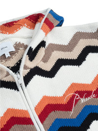 Handcrafted from a recycled blend of premium cotton and polyester, this Full-Zip Sweater showcases a zig zag all over design, custom fit, complemented by drop shoulder sleeves, rib-knit cuffs and hem. Features intricate embroidery throughout. CARE INSTRUCTIONS 50% Cotton/50% Polyester Dry clean only. SIZING Standard fit - We recommend taking your standard size.
