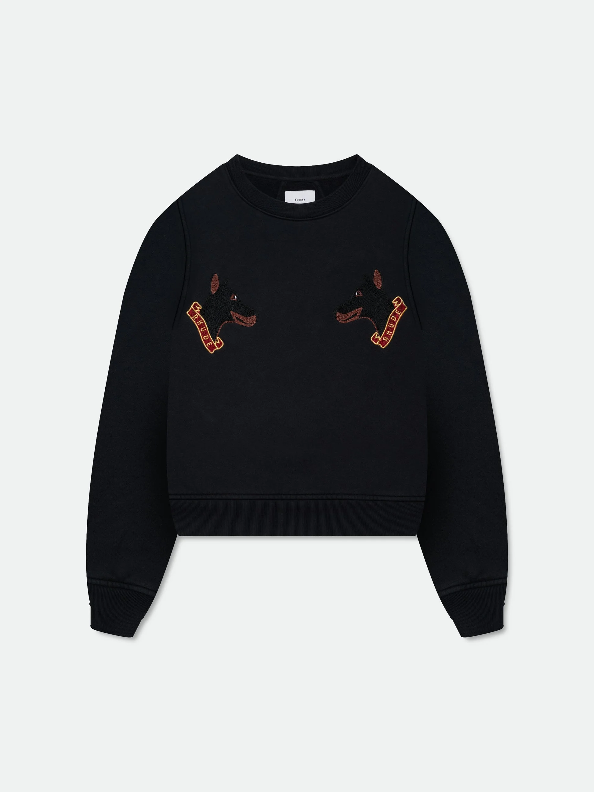 This long-sleeve cotton crewneck showcases the Rhude London Hounds embroidered on the front, with bold Rhude designs throughout the back. It features a comfortable pull over styling, and dropped shoulders for a relaxed, effortless fit. 100% COTTON