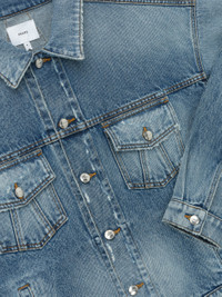 Expertly crafted with premium materials, this drop neck denim trucker jacket features twin patch pockets, and side pockets at the front. Custom Rhude button closures add unique style to this handcrafted piece, made in Los Angeles. 100% COTTON DENIM
