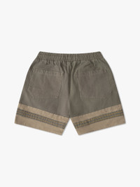 Premium twill short with logo embroidered across front legs. Twin pockets for added functionality on front and back. Extended drawstrings in our signature mustard tone. CARE INSTRUCTIONS 100% COTTON Dry clean only. Standard fit. SIZING We recommend taking your standard size.
