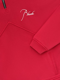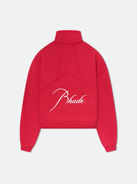 Heavyweight quarter-zip jacket with signature Rhude script on the front and back. Front quarter zipper closure with custom RHUDE Pill Hardware. 100% COTTON/100% LYOCELL/100% POLY Dry clean only. Standard fit- We recommend taking your standard size.