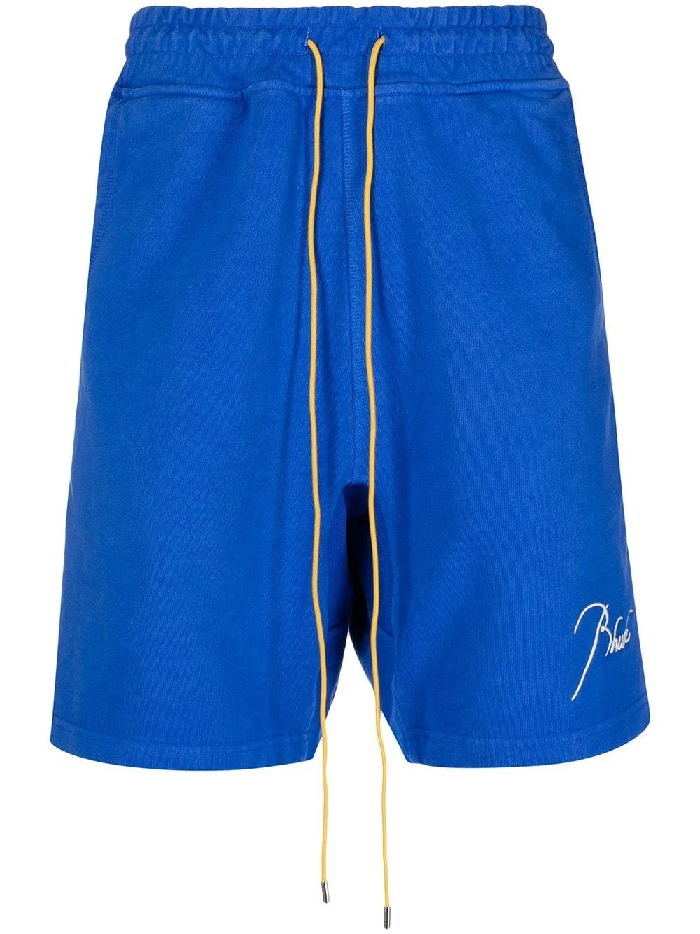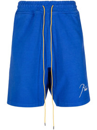 embroidered-logo drawstring shorts royal blue cotton embroidered logo to the front drawstring fastening waist knee-length two side slit pockets rear patch pocket Made in United States Composition Cotton 100% SIZE & FIT Model measurements Height 6 ft 0 in(1.83 m) Bust/Chest 37.79 in(96 cm) Hips 37 in(94 cm) Waist 30.31 in(77 cm) FittingInformation This piece fits true to size. We recommend you get your regular size Designed for a slim fit at the waist and loose over the leg Made with a mid-weight fabric Washing instructions Hand Wash