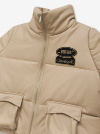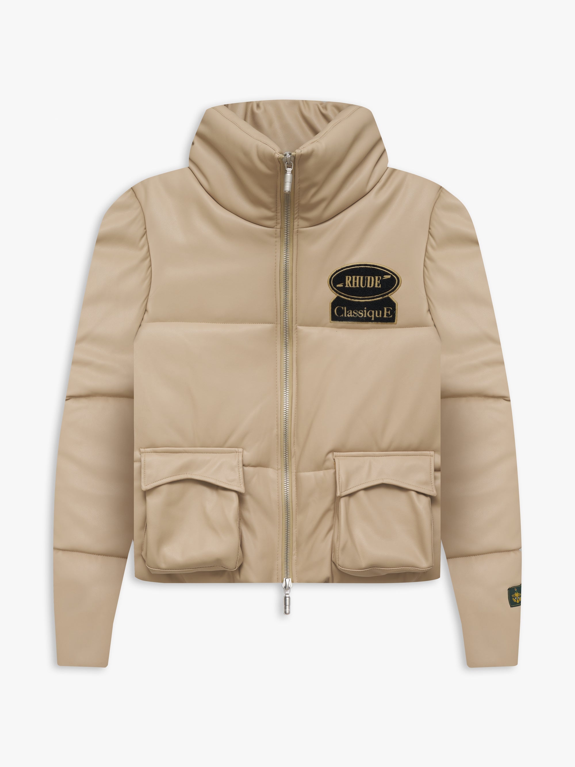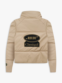 PUFFER JACKET WITH A STAND COLLAR. TWIN CHEVRON POCKETS AT FRONT. TWO-WAY ZIPPER CLOSURE WITH CUSTOM RHUDE PILL HARDWARE. RHUDE CLASSIQUE PATCH PLACED ON FRONT AND BACK PANEL. CARE 100% POLYURETHANE WE RECOMMEND TAKING YOUR STANDARD SIZE DRY CLEAN ONLY