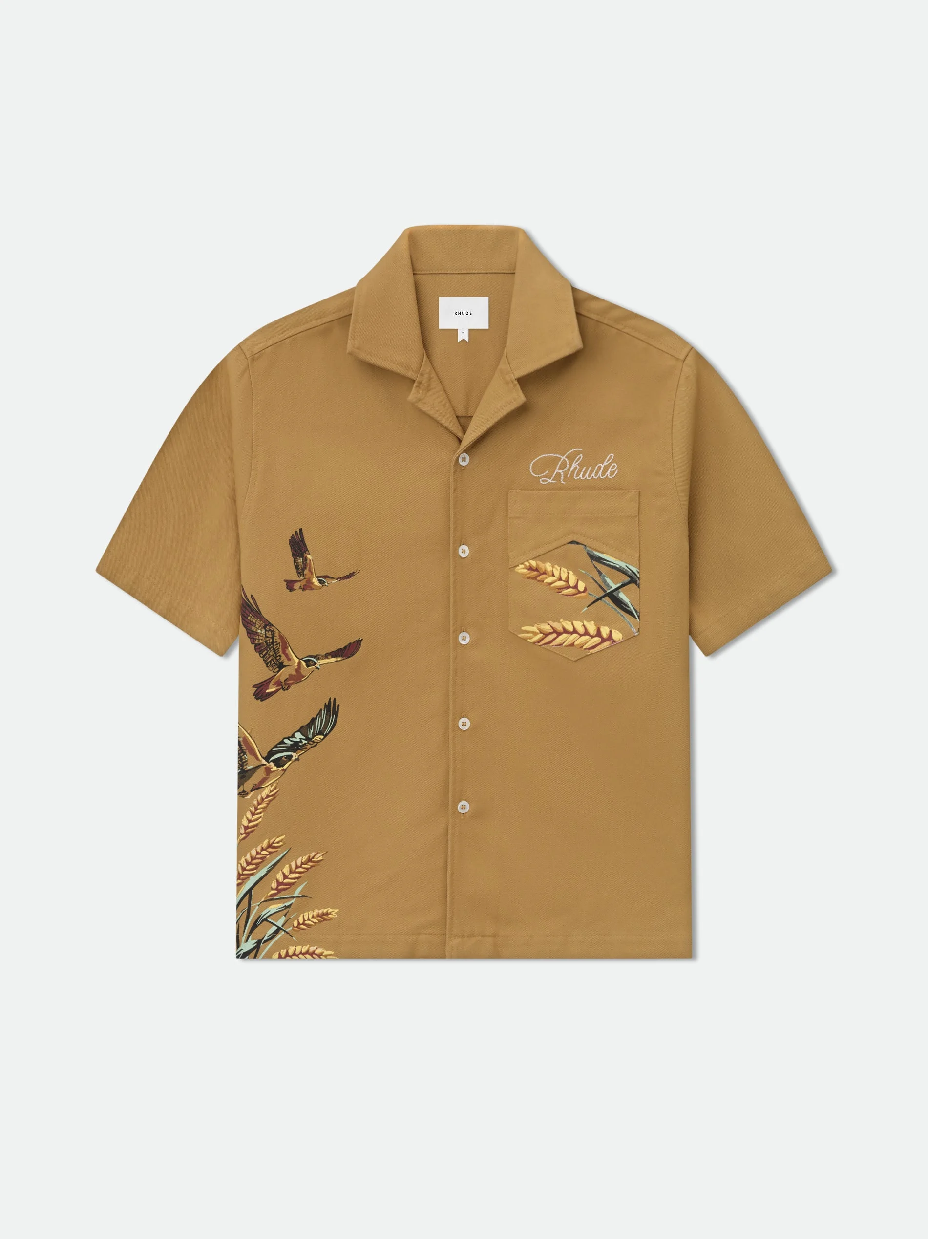 Made from premium cotton, this custom-fit shirt features a stylish button down front closure for easy wear. Features Rhude script logo embroidered on the front, with falcon design throughout. 100% BRUSH BULL COTTON