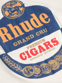 Custom-vintage fit cotton tee shirt with a ribbed neckline and short sleeves. Features RHUDE Grand Cru Cigars design printed on front chest and back. CARE INSTRUCTIONS 100% COTTON DRY CLEAN ONLY WE RECOMMEND TAKING YOUR STANDARD SIZE