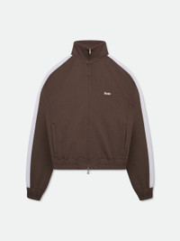 Premium track jacket features a sleek stand collar and a versatile two-way zip closure. RHUDE classique logo is printed on the chest, while contrasting piping adds a dynamic touch to the front, sleeves, and back. Practical welt pockets offer convenient storage, and the elasticized hem and cuffs ensure a comfortable, secure fit. Fully lined for added warmth and structure, making it a stylish and functional piece. 100% polyester