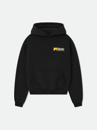 Long sleeve premium cotton hoodie with Rhude international racing graphic printed on the front, with a clean back. Featuring a kangaroo front pocket and dropped shoulders. Each piece is unique and print distressing my vary per style. 100% COTTON