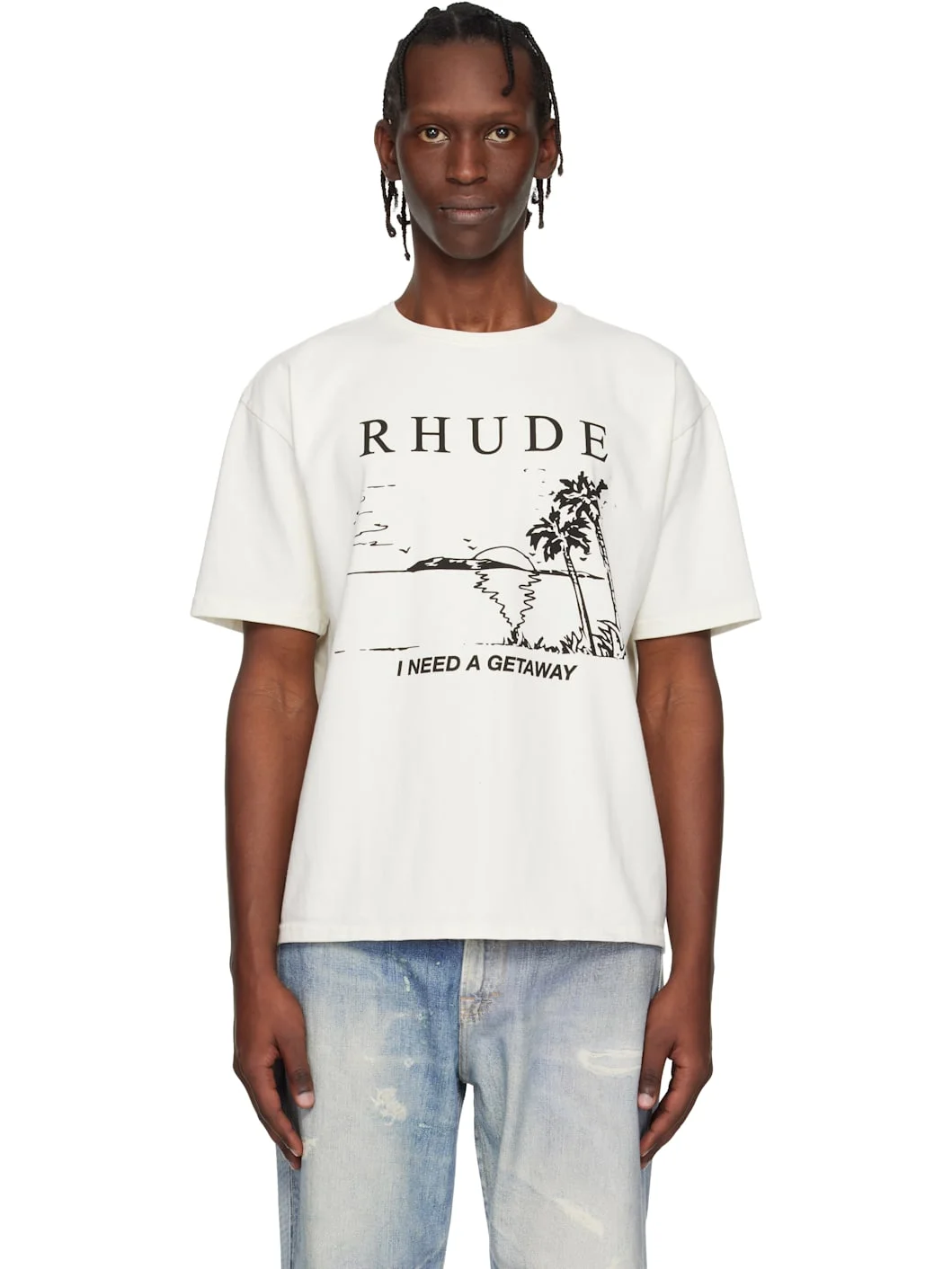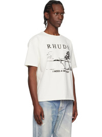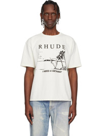 Cotton jersey T-shirt. · Rib-knit crewneck · Logo, graphic, and text printed at front · Dropped shoulders Supplier color: Vintage white/Black 100% cotton. Made in United States 261923M213011