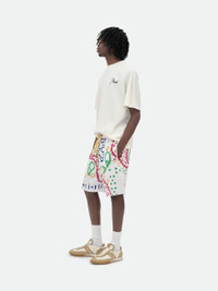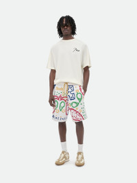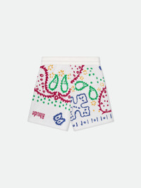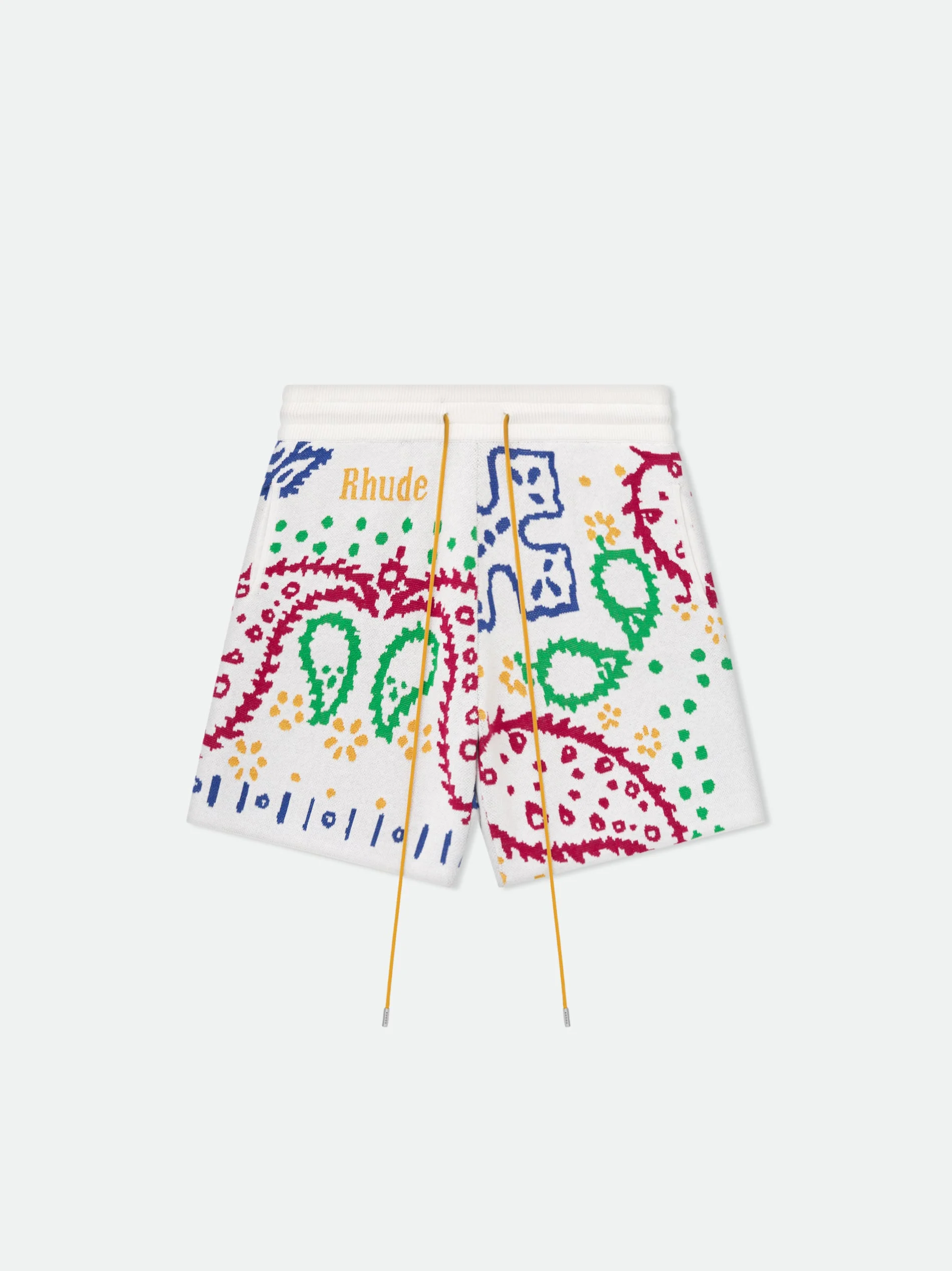 Premium short from a cotton-c ashmere blend featuring Rhude all-over bandana design throughout. Featuring twin side pockets, single back pocket, and extended drawstrings in our signature mustard tone. 85% COTTON, 15% CASHMERE