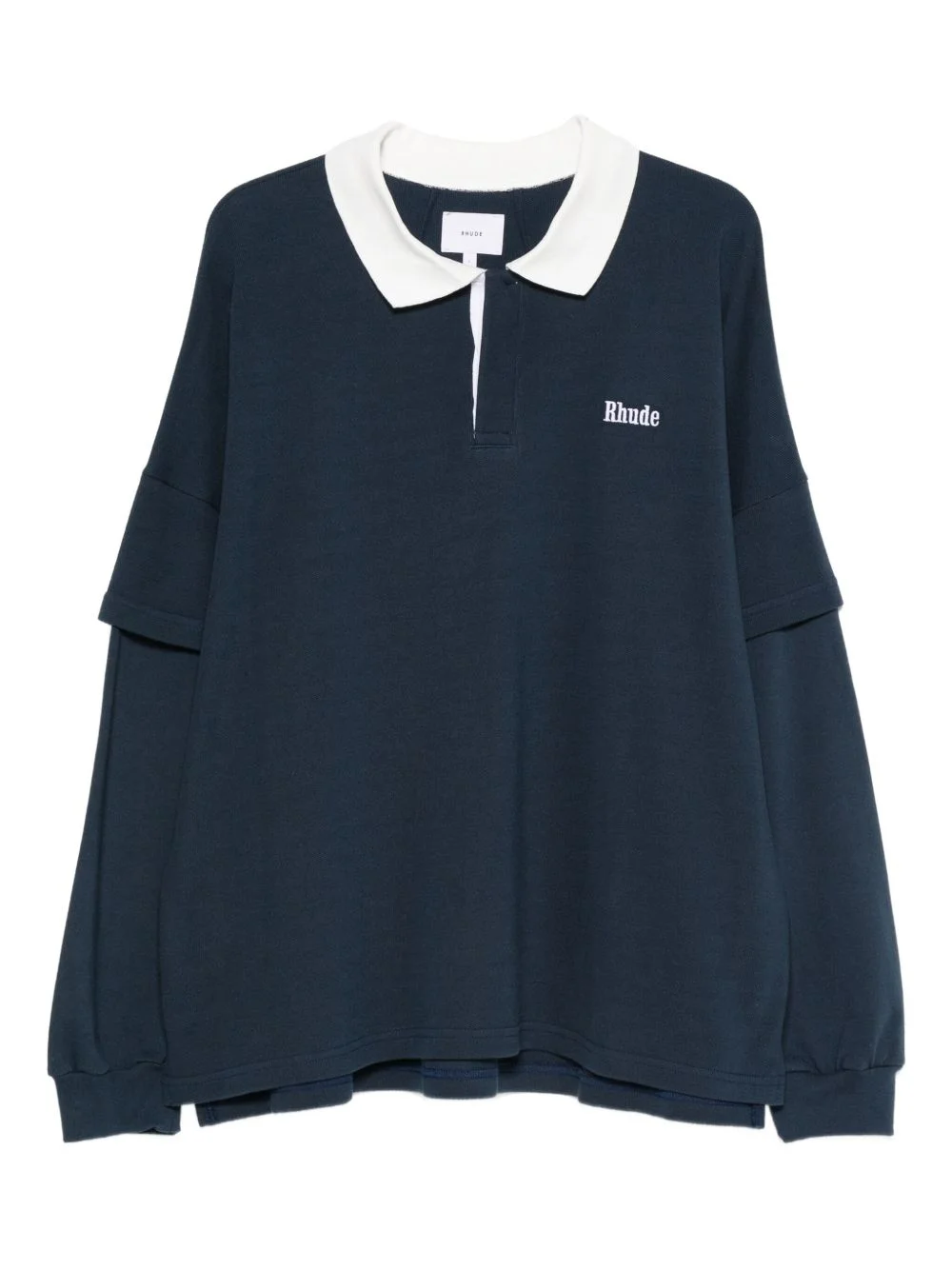 logo-embellished polo shirt Highlights - Navy blue - Polo collar - Long sleeves - Front button placket - Logo detail - Layered details Imported Composition Fabric 100% SIZE & FIT Model measurements Height 6 ft 1 in(1.85 m) Bust/Chest 35.82 in(91 cm) Hips 37.79 in(96 cm) Waist 29.13 in(74 cm) Washing instructions Read Manufacturer Guidelines