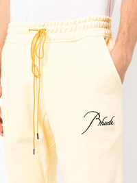 logo-embroidered track trousers yellow cotton embroidered logo to the side drawstring fastening waist two side slit pockets rear patch pocket elasticated ankles Made in Italy Composition Outer: Cotton 100% SIZE & FIT Model measurements Height 6 ft 2 in(1.88 m) Bust/Chest 38.18 in(97 cm) Hips 37 in(94 cm) Waist 29.92 in(76 cm)