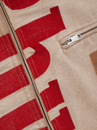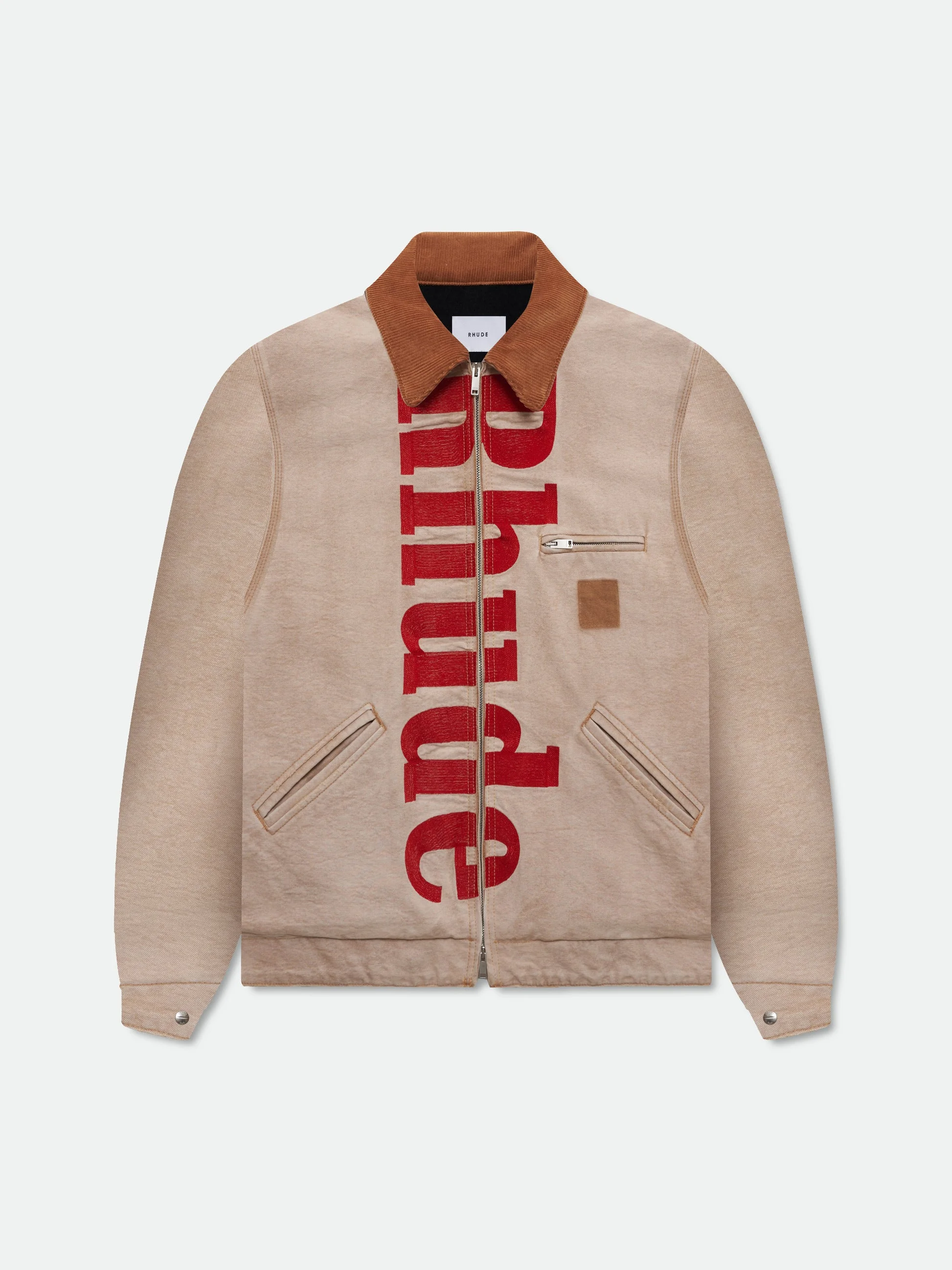 Premium workwear jacket features a stand collar and a versatile two-way zip closure. RHUDE logo is printed down the chest. Practical welt pockets offer convenient storage, and the elasticized hem and cuffs ensure a comfortable, secure fit. Fully lined for added warmth and structure, making it a stylish and functional piece. 100% COTTON