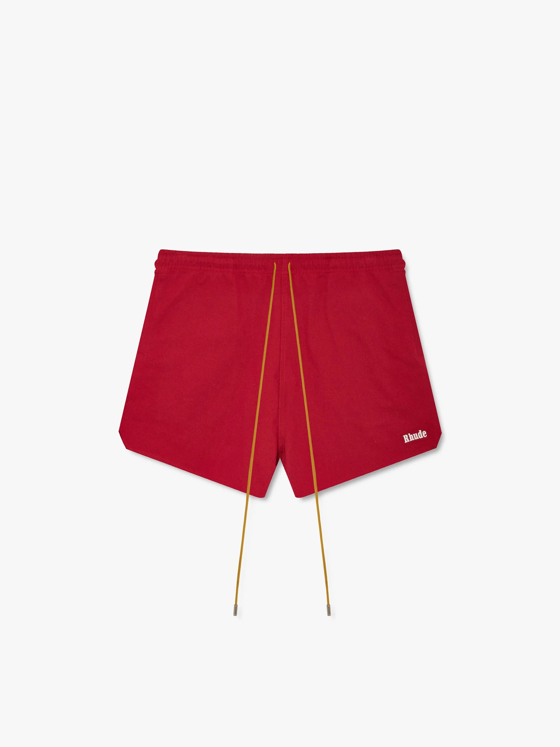 Premium twill short with logo embroidered across front legs. Twin zipper pockets with silver hardware. Features an elastic waistband with exaggerated drawstrings in our signature Mustard tone to ensure a secure and adjustable fit. 100% COTTON
