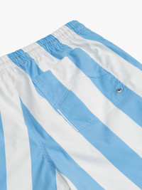 Premium logo striped swim shorts f eaturing an elasticated waistband, twin side pockets, and singular back pocket. Exaggerated front drawstrings in our signature Mustard tone. CARE INSTRUCTIONS 100% Nylon Wash in Cold Water on Gentle cycle using a bleach-free detergent. SIZING Standard fit. We recommend taking your standard size.
