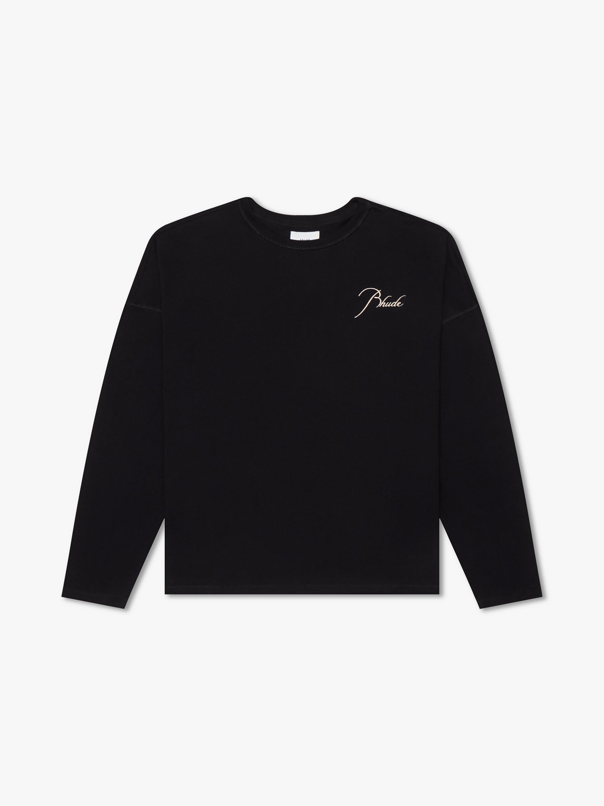 This custom boxy-fit premium washed cotton long sleeve replicates the perfect 90's shirt using our premium materials and construction. Features Rhude script logo embroidered on the front and back. 100% COTTON MACHINE WASH COLD. STANDARD FIT. WE RECOMMEND TAKING YOUR STANDARD SIZE.