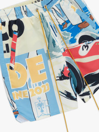 Premium track short with Rhude Monaco inspired designs throughout. Twin side pockets, with extended drawstrings in our signature mustard tone. SELF: 100% NYLON LINING: 100% POLYESTER Standard fit. We recommend taking your standard size.