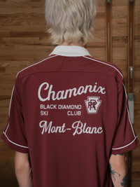 This retro bowling shirt pays tribute to Chamonix Mont-Blanc. Features a front button closure, a notched collar, elbow-length sleeves, and chest patch pockets. 100% Polyester Standard fit - We recommend taking your standard size.