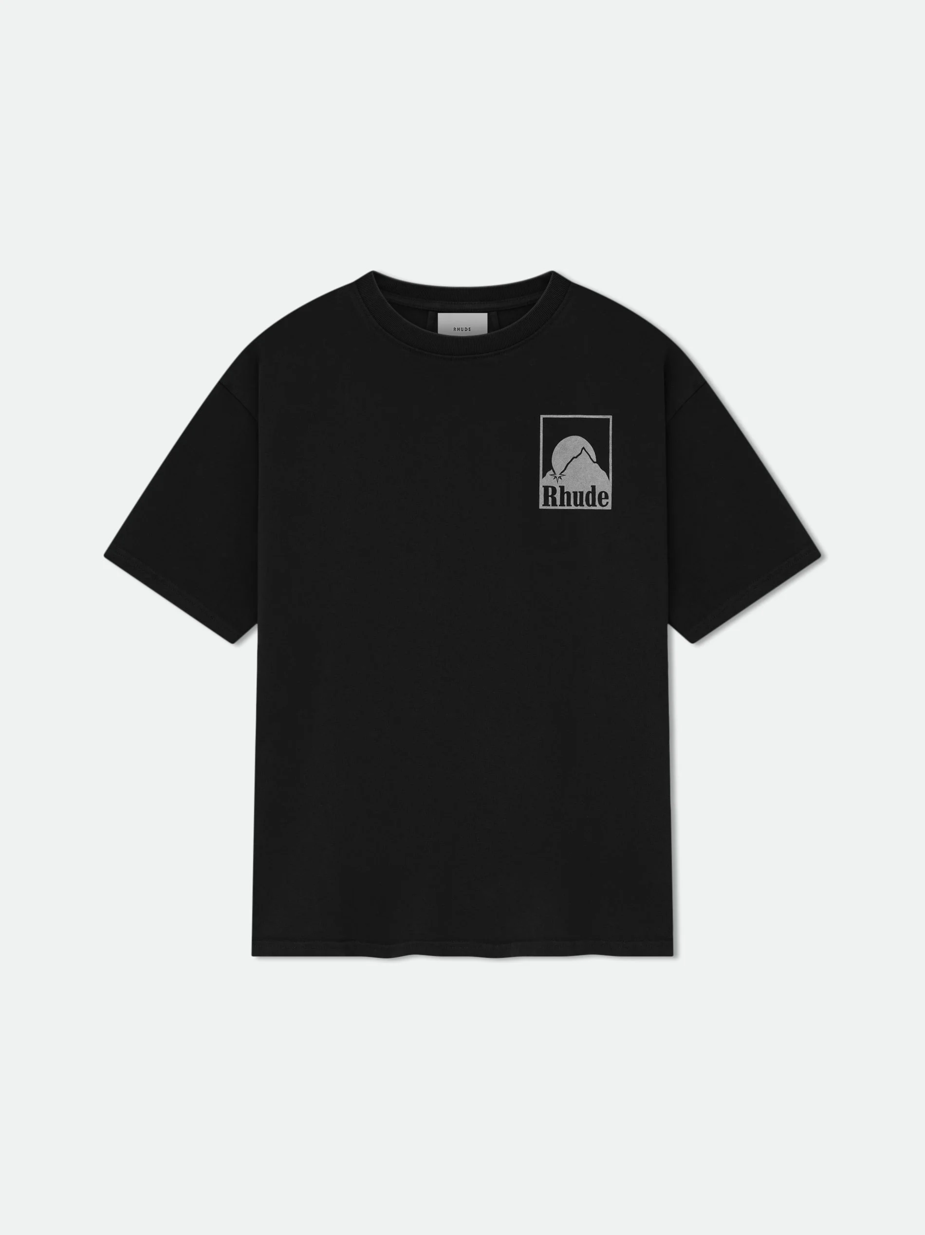 Custom-fit vintage wash cotton short sleeve tee-shirt with Rhude moonlight badge graphics printed at front chest, and back. 100% COTTON