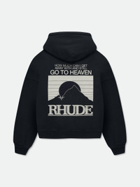 Long sleeve cotton heavyweight hoodie with Rhude "moonlight pack" graphic designs printed on the front and back. Featuring a kangaroo front pocket and dropped shoulders. Each piece is unique and print distressing my vary per style. 100% COTTON